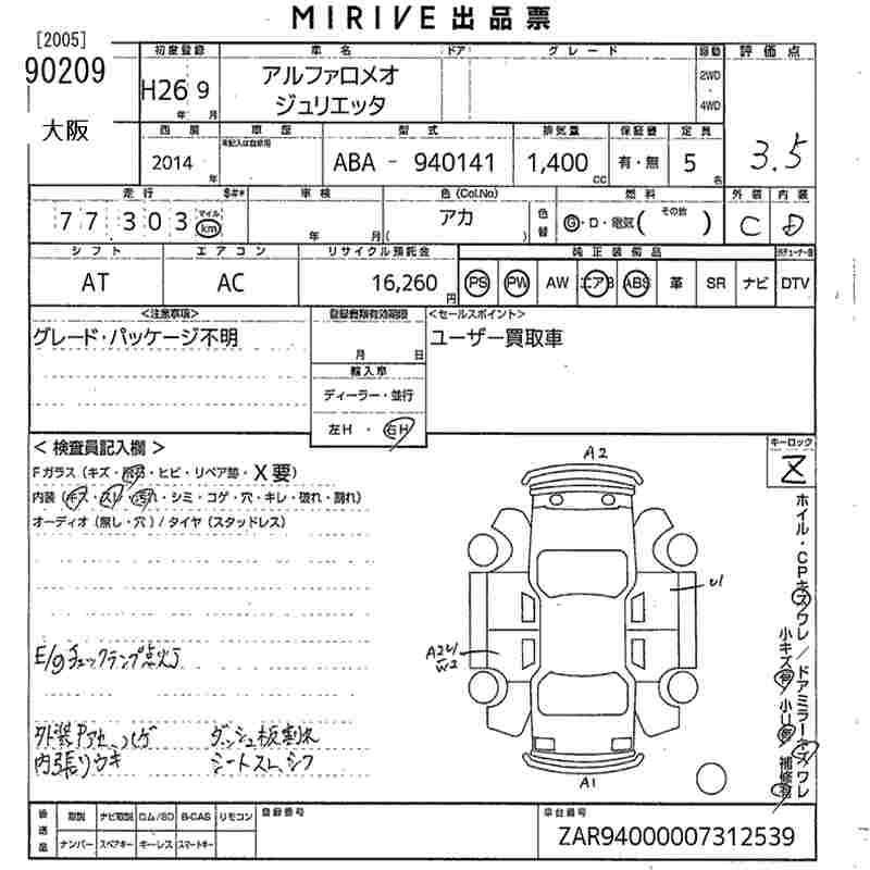 Alfaromeo Giulietta, 2014 года - Лот№90209 ★3.5