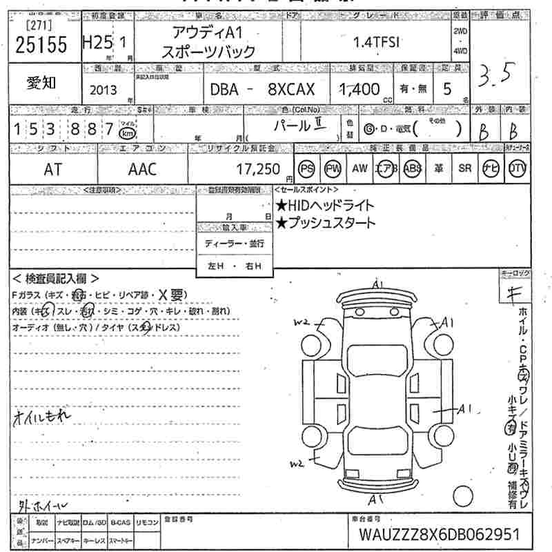 Audi A1, 2013 года - Лот№25155 ★3.5