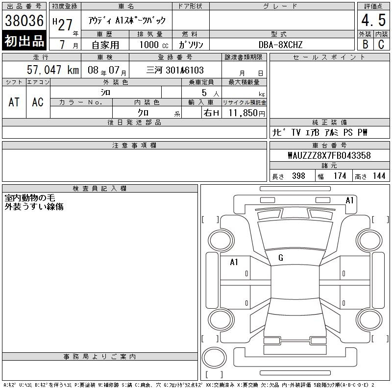 Audi A1, 2015 года - Лот№38036 ★4.5