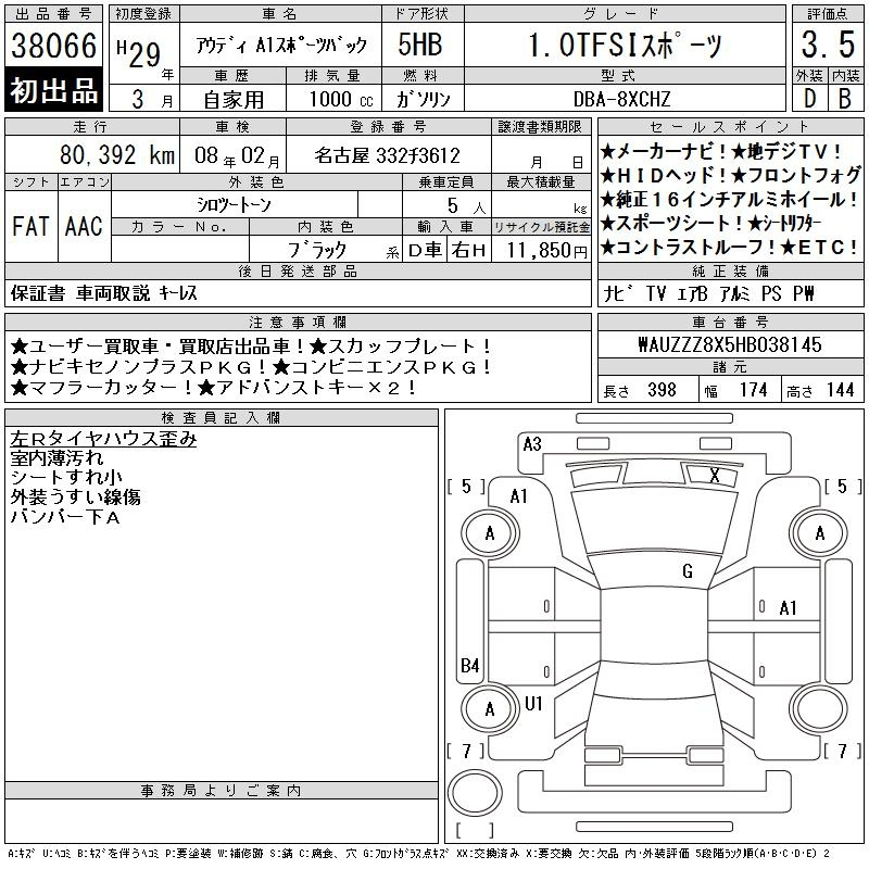 Audi A1, 2017 года - Лот№38066 ★3.5