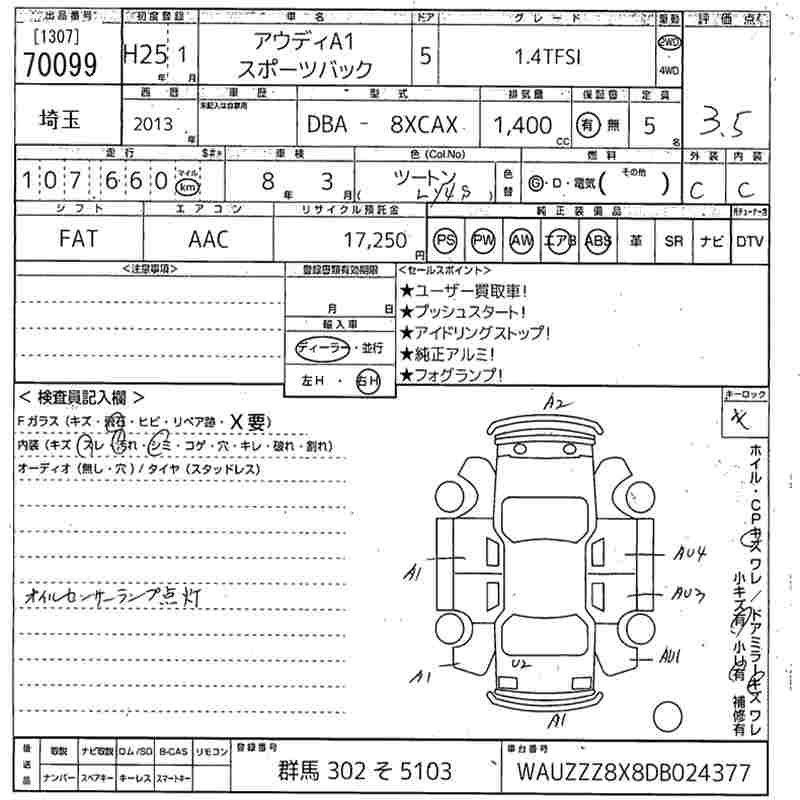 Audi A1, 2013 года - Лот№70099 ★3.5