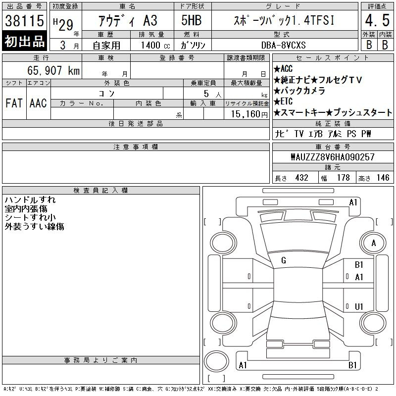 Audi A3, 2017 года - Лот№38115 ★4.5