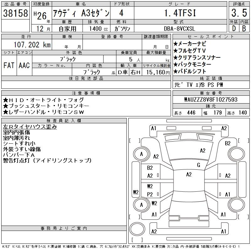 Audi A3, 2014 года - Лот№38158 ★3.5