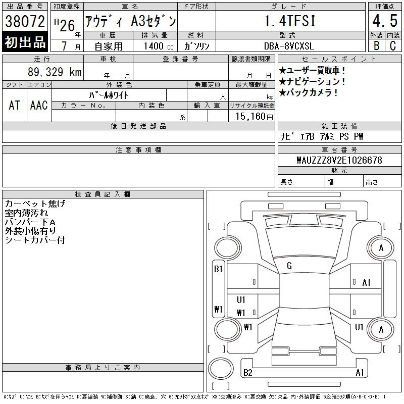 Audi A3, 2014 года - Лот№38072 ★4.5