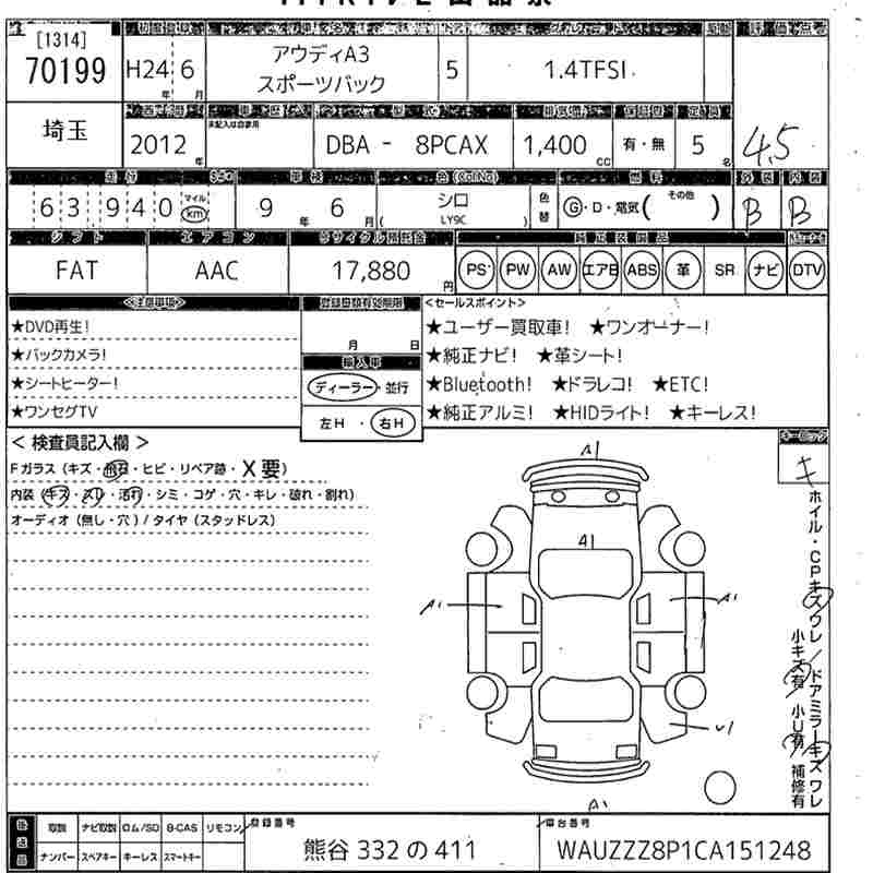 Audi A3, 2012 года - Лот№70199 ★4.5