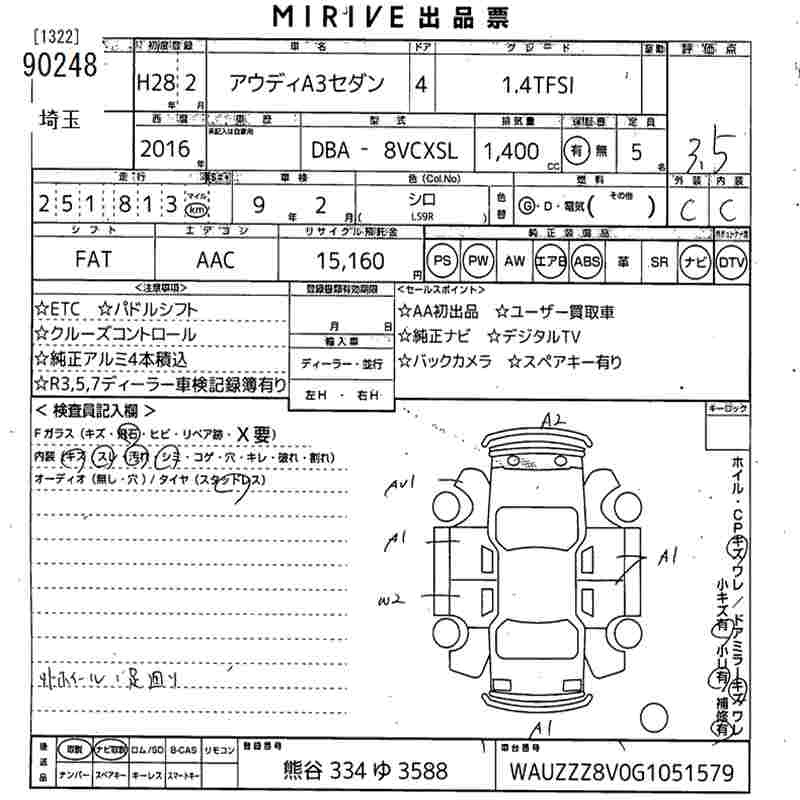 Audi A3, 2016 года - Лот№90248 ★3.5