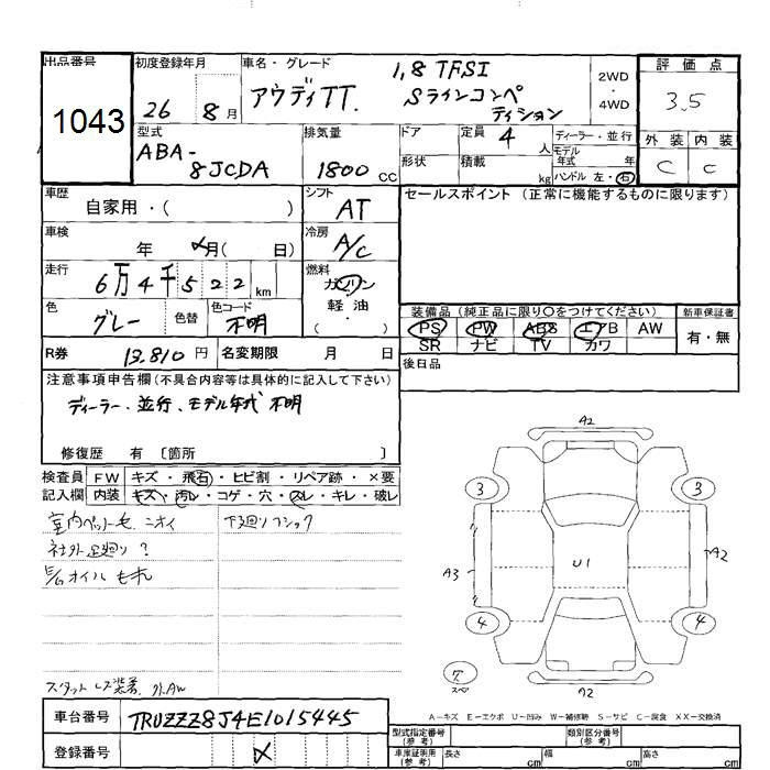 Audi Tt, 2014 года - Лот№1043 ★3.5