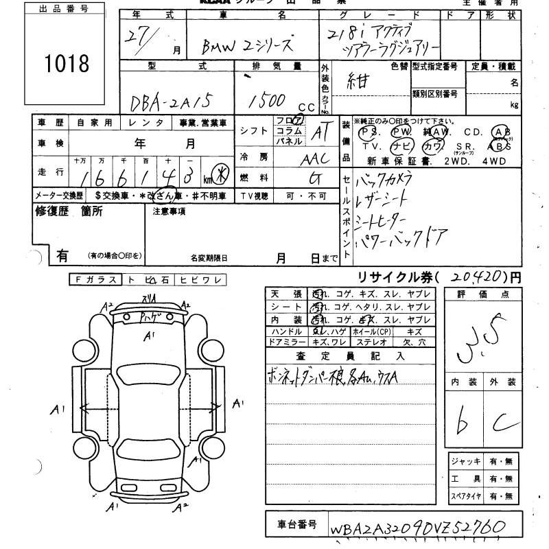 Bmw 2 series, 2015 года - Лот№1018 ★3.5