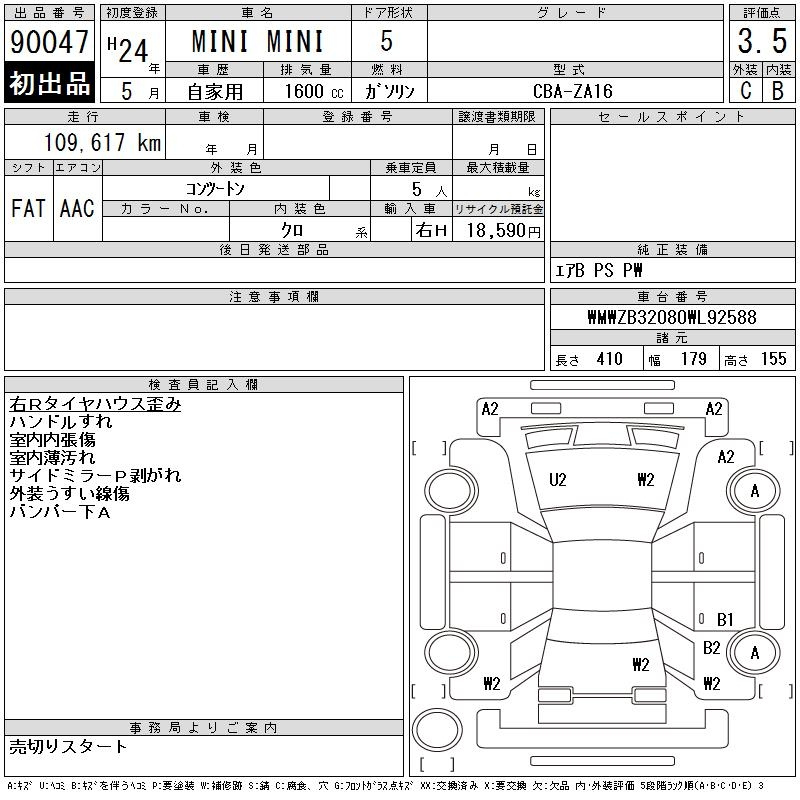 Bmw Mini, 2012 года - Лот№90047 ★3.5