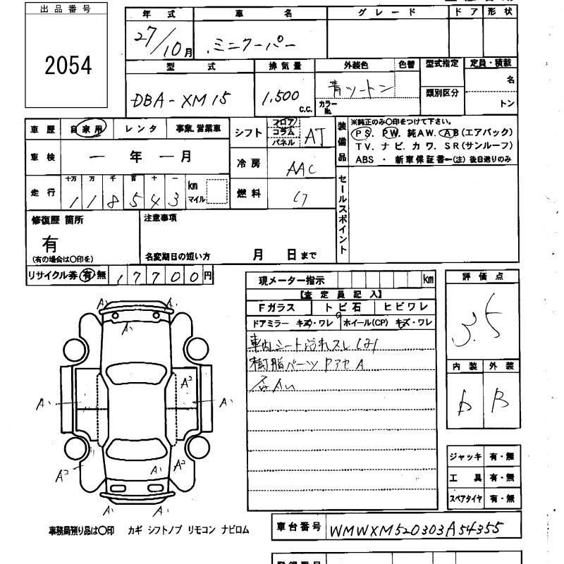 Bmw Mini, 2015 года - Лот№2054 ★3.5
