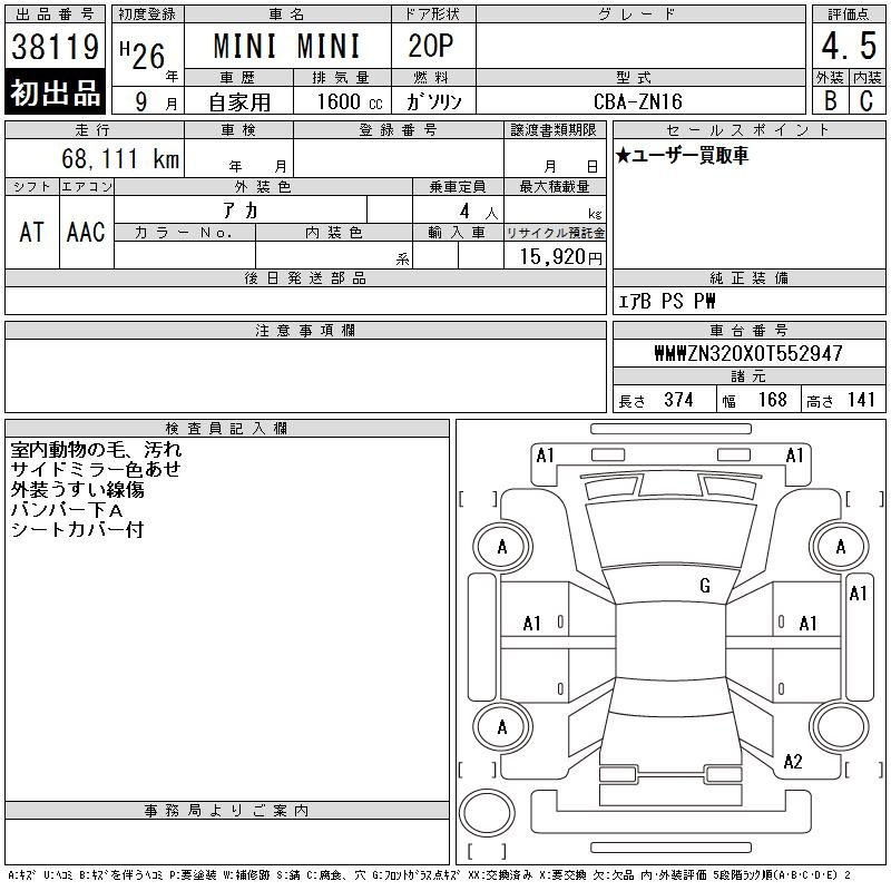 Bmw Mini, 2014 года - Лот№38119 ★4.5