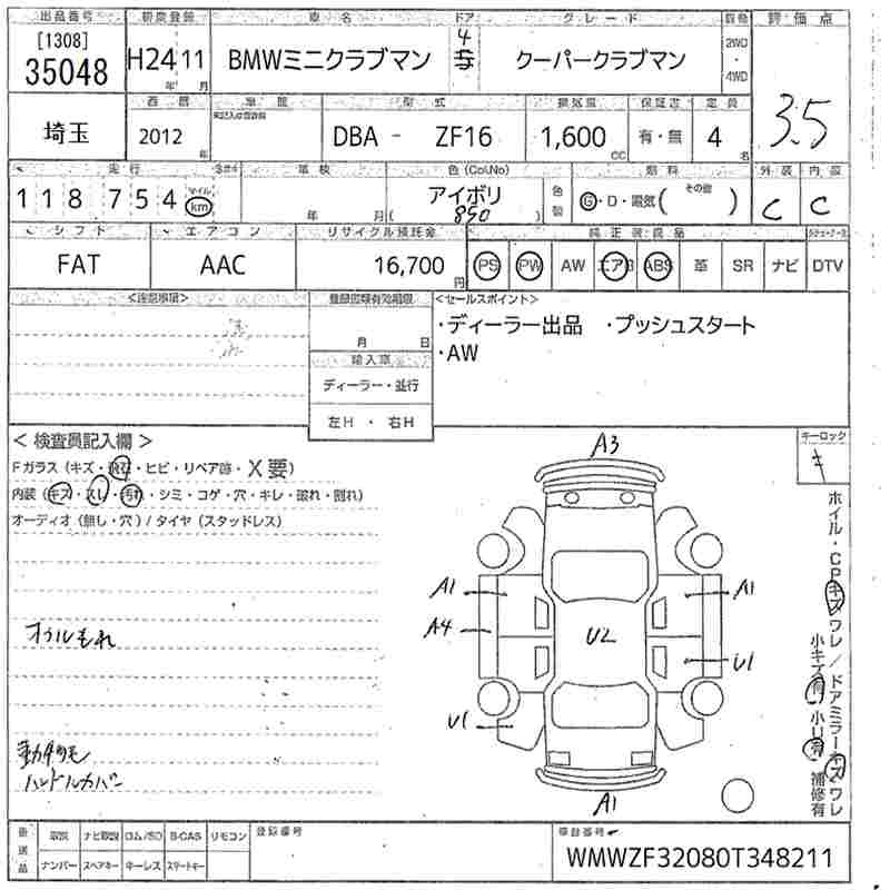 Bmw Mini, 2012 года - Лот№35048 ★3.5