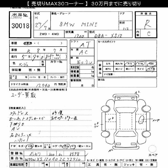 Bmw Mini, 2015 года - Лот№30018 ★R