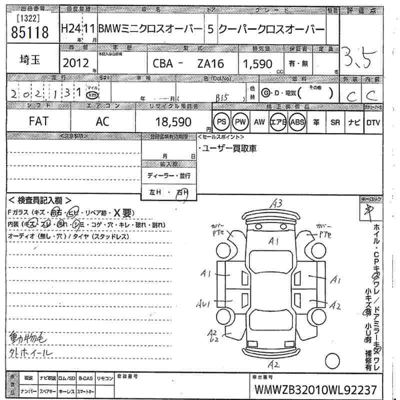 Bmw Mini, 2012 года - Лот№85118 ★3.5