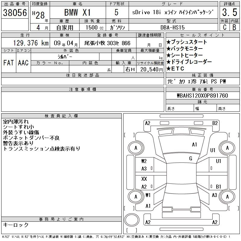 Bmw X1, 2016 года - Лот№38056 ★3.5
