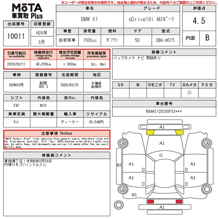 Лот№10011 14 Января 2026 года MOTA Kuruma Kaitori