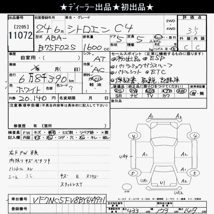 Citroen C4, 2012 года - Лот№11072 ★3.5