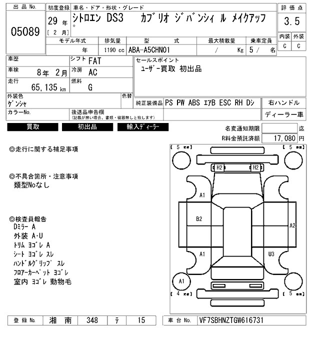Citroen Ds3, 2017 года - Лот№5089 ★3.5