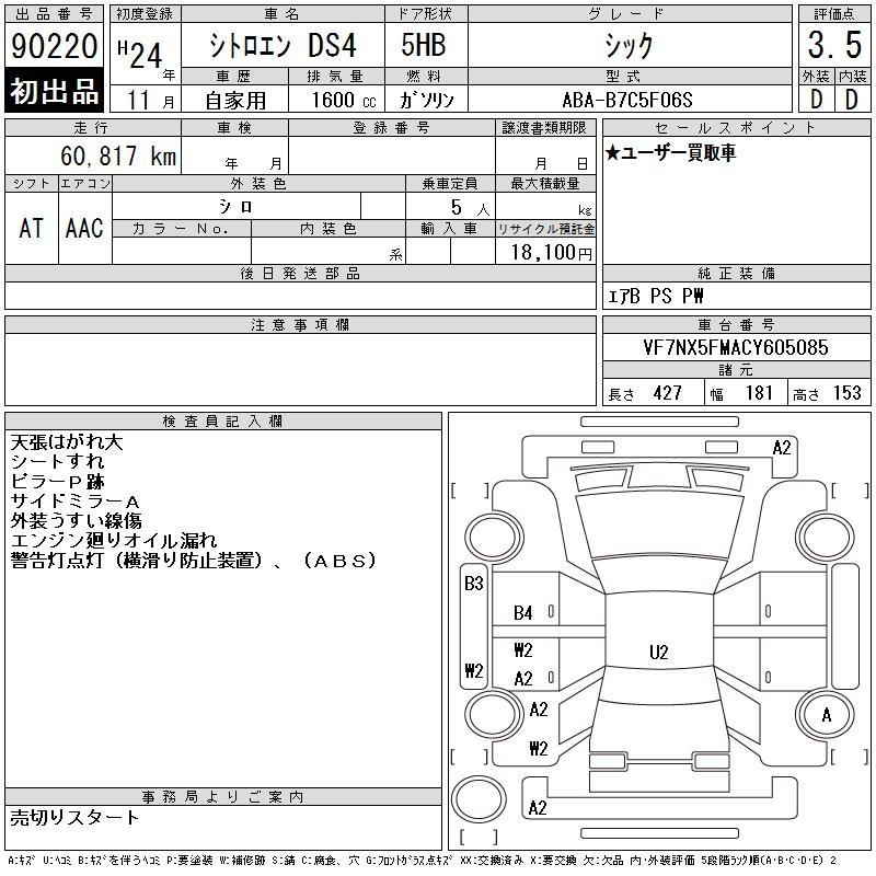 Citroen Ds4, 2012 года - Лот№90220 ★3.5