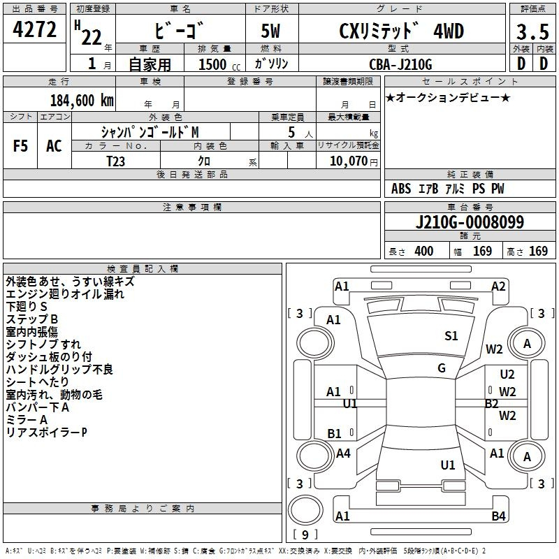 Daihatsu Bego, 2010 года - Лот№4272 ★3.5