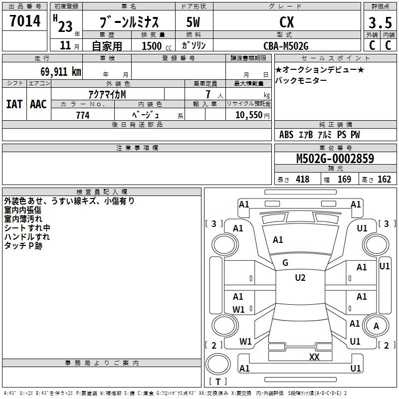 Daihatsu Boon, 2011 года - Лот№7014 ★3.5
