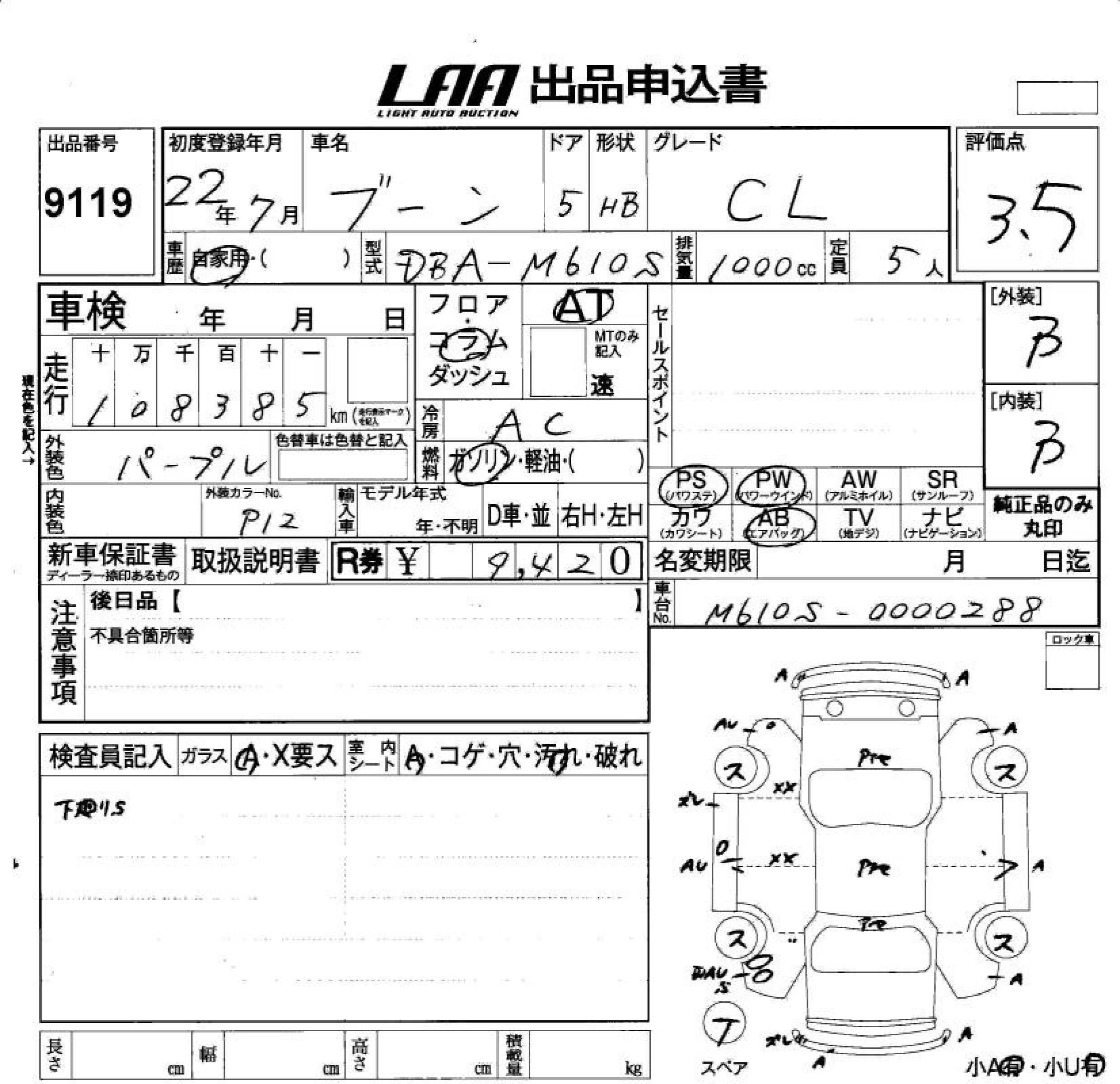 Daihatsu Boon, 2010 года - Лот№9119 ★3.5