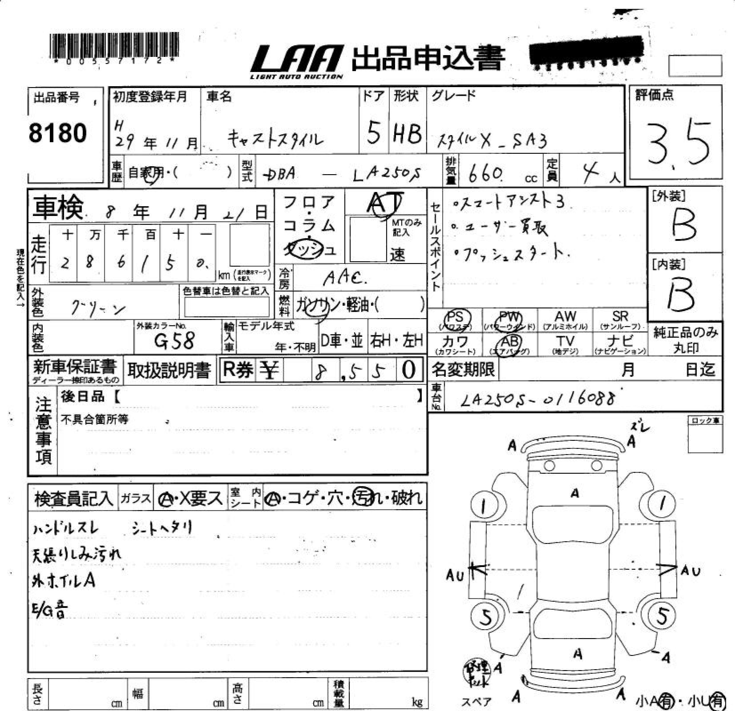 Daihatsu Cast, 2017 года - Лот№8180 ★3.5