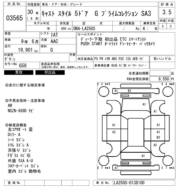 Daihatsu Cast, 2018 года - Лот№3565 ★3.5