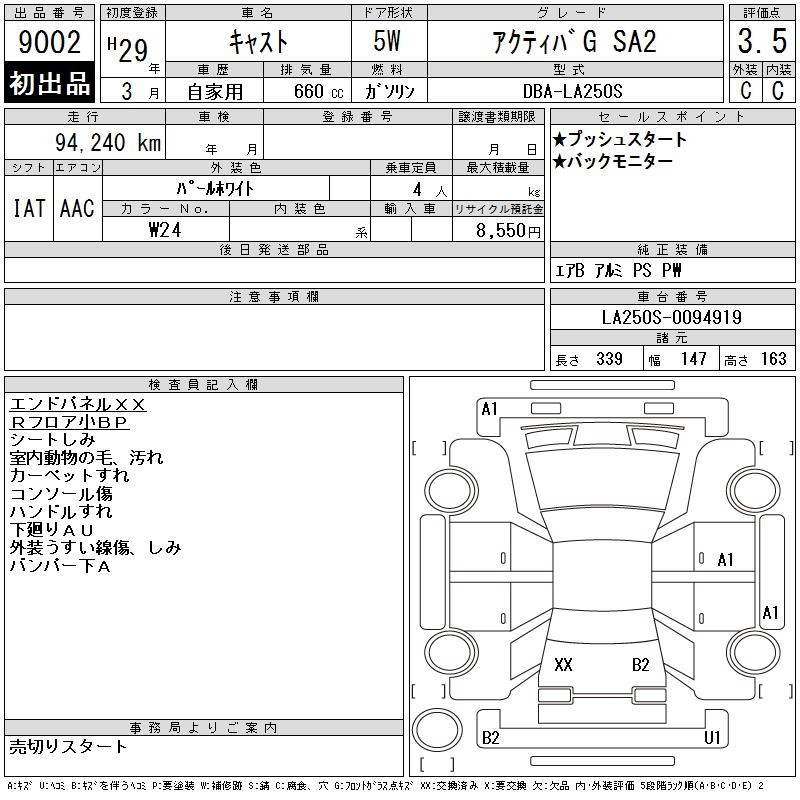 Daihatsu Cast, 2017 года - Лот№9002 ★3.5