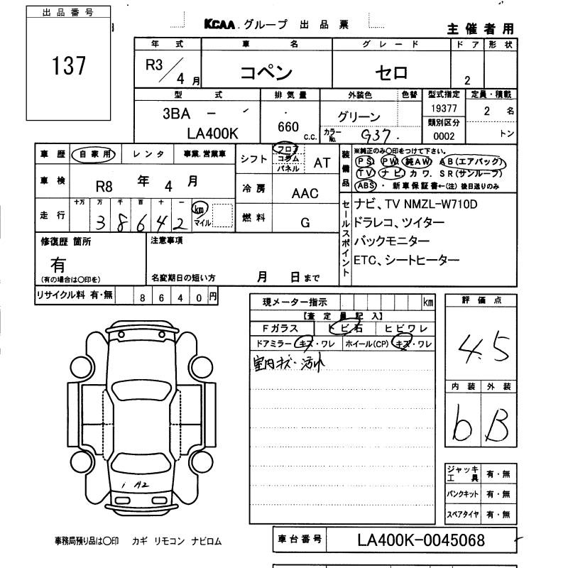 Daihatsu Copen, 2021 года - Лот№137 ★4.5