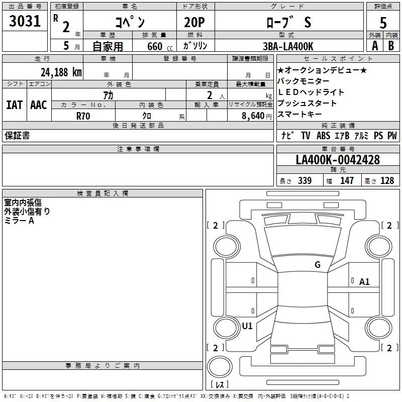 Daihatsu Copen, 2020 года - Лот№3031 ★5