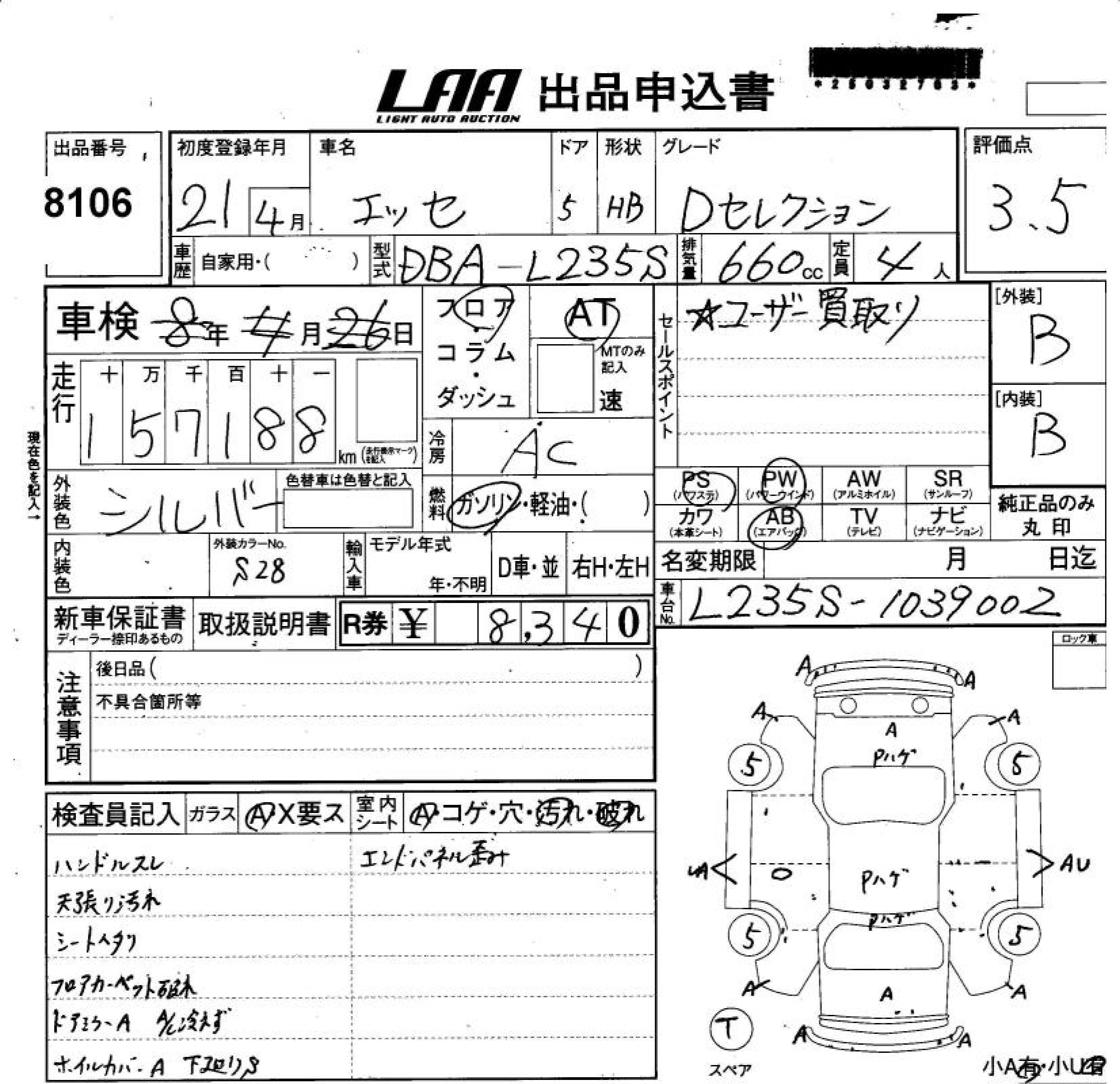 Daihatsu Esse, 2009 года - Лот№8106 ★3.5