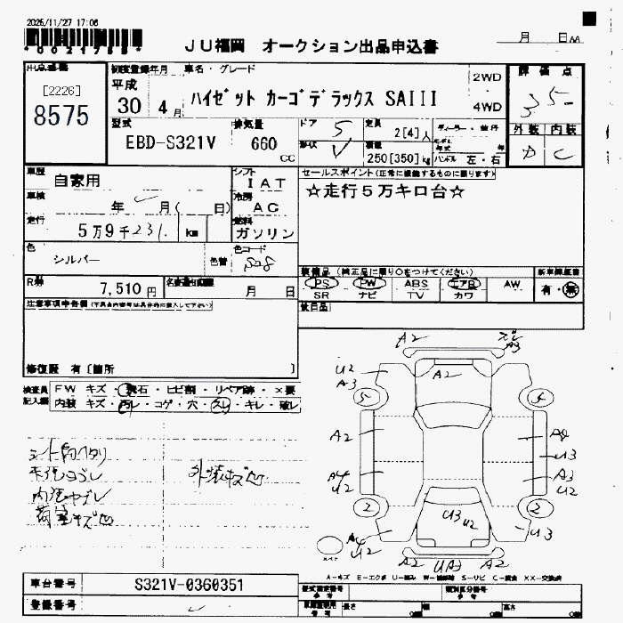 Daihatsu Hijet van, 2018 года - Лот№8575 ★3.5