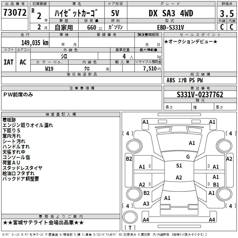Daihatsu Hijet van, 2020 года - Лот№73072 ★3.5
