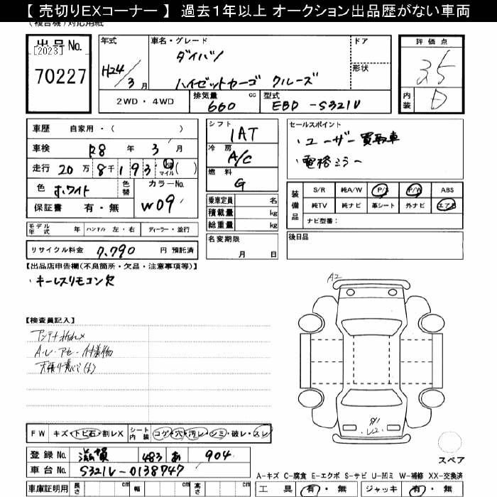 Daihatsu Hijet van, 2012 года - Лот№70227 ★3.5
