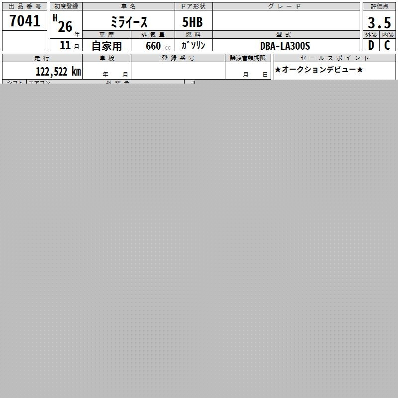 Daihatsu Mira e s, 2014 года - Лот№7041 ★3.5