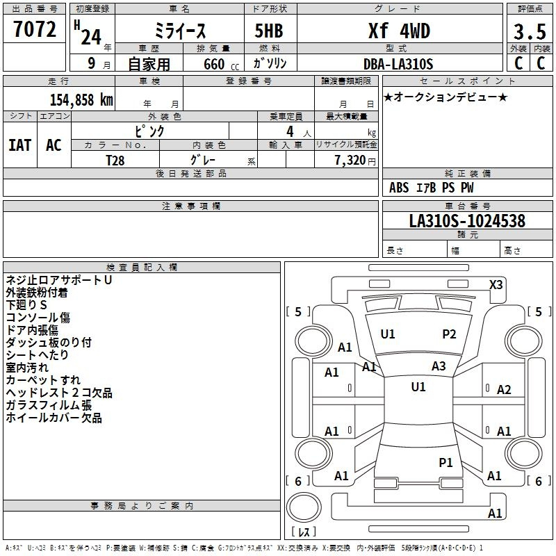 Daihatsu Mira e s, 2012 года - Лот№7072 ★3.5
