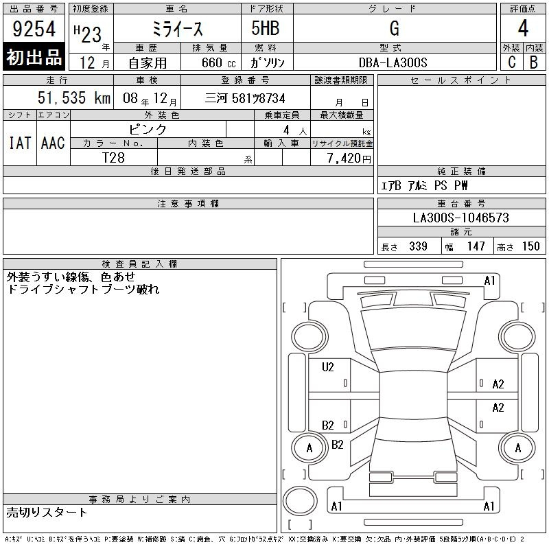 Daihatsu Mira e s, 2011 года - Лот№9254 ★4