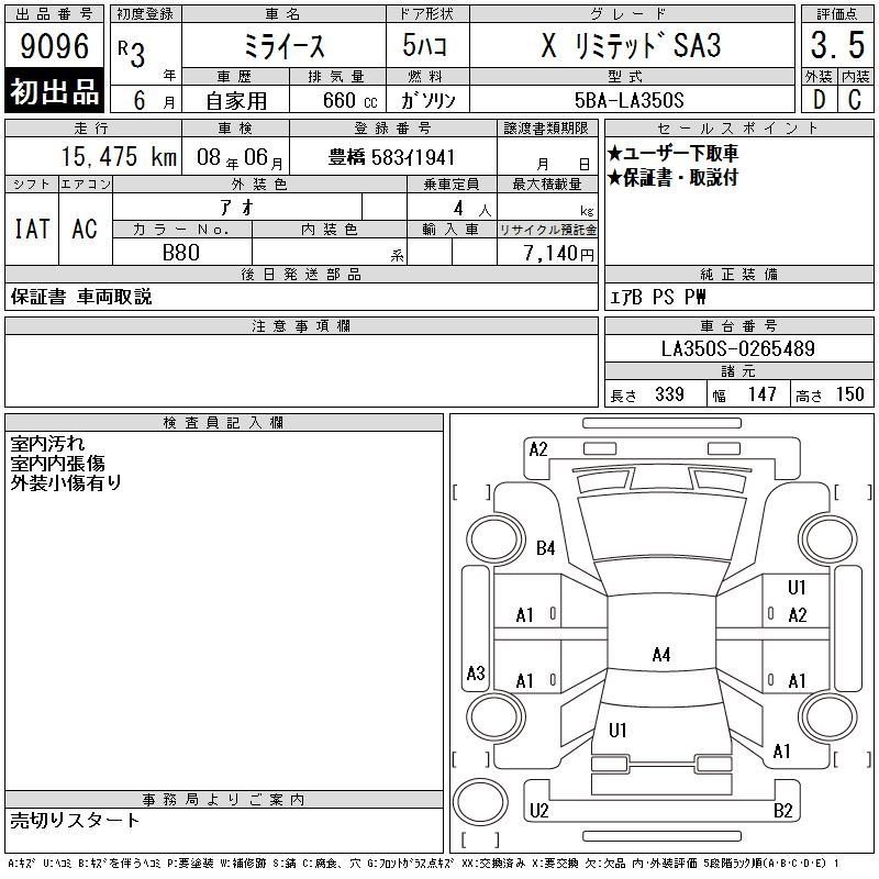 Daihatsu Mira e s, 2021 года - Лот№9096 ★3.5