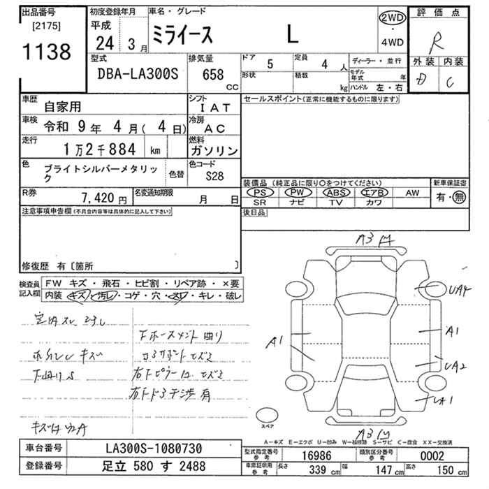 Daihatsu Mira e s, 2012 года - Лот№1138 ★R