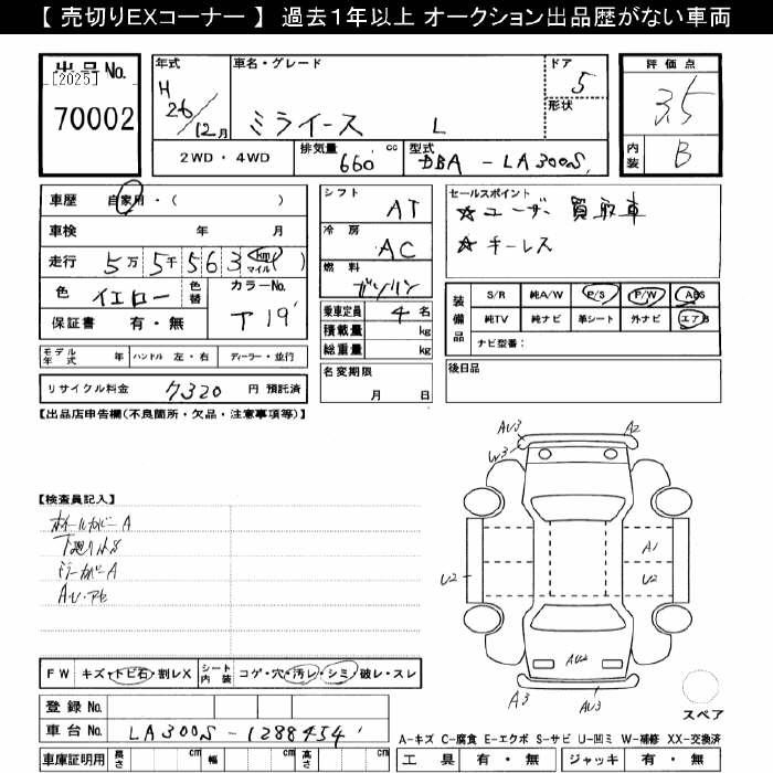 Daihatsu Mira e s, 2014 года - Лот№70002 ★3.5