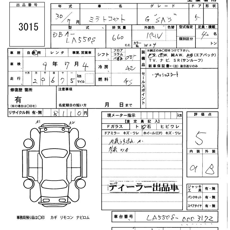 Daihatsu Mira tocot, 2018 года - Лот№3015 ★5
