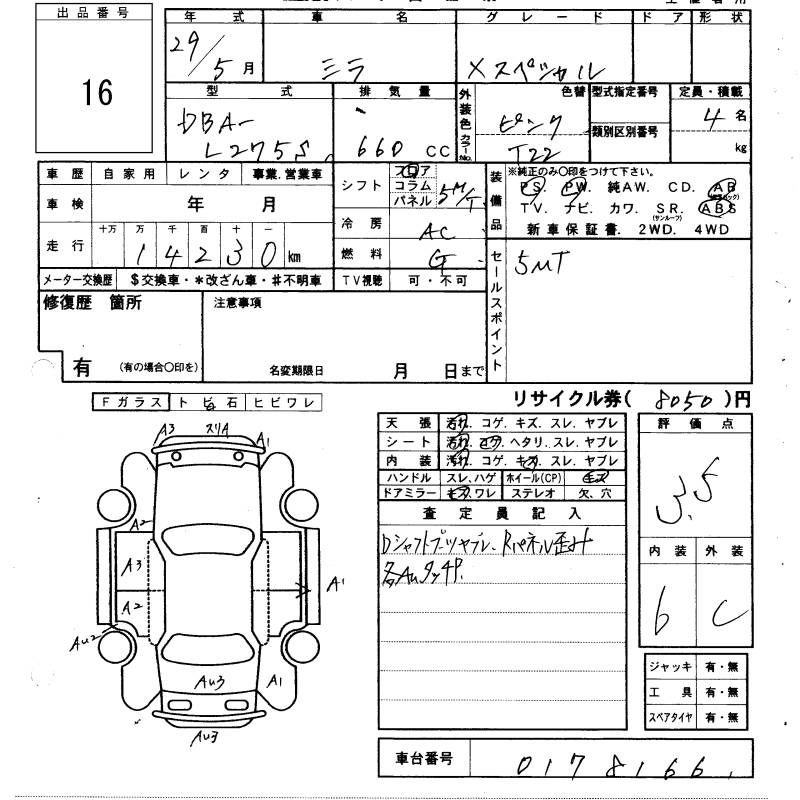 Daihatsu Mira, 2017 года - Лот№16 ★3.5