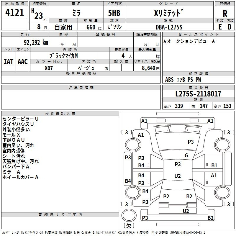 Daihatsu Mira, 2011 года - Лот№4121 ★R