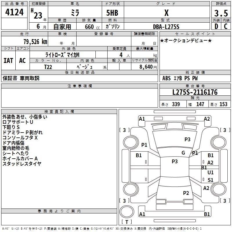 Daihatsu Mira, 2011 года - Лот№4124 ★3.5