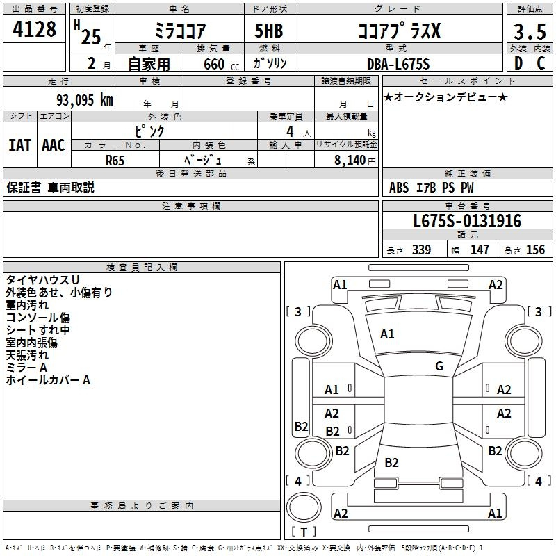 Daihatsu Mira, 2013 года - Лот№4128 ★3.5