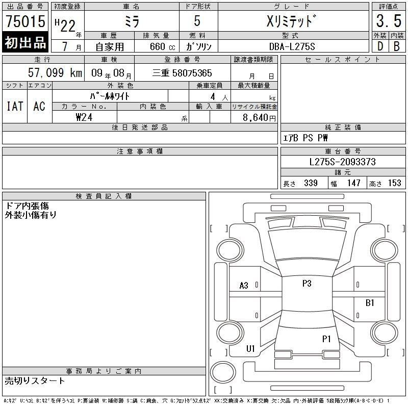 Daihatsu Mira, 2010 года - Лот№75015 ★3.5