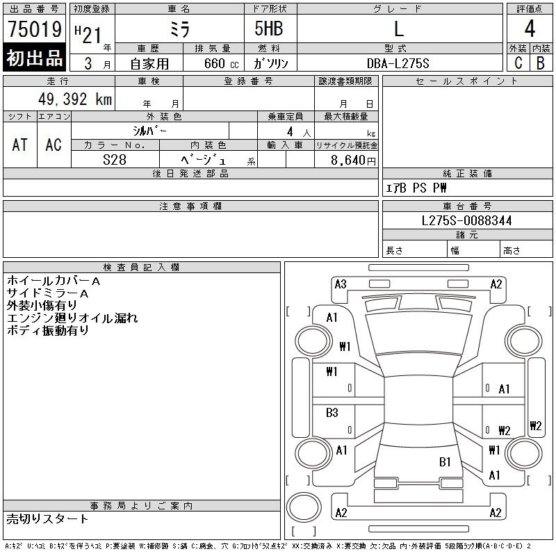 Daihatsu Mira, 2009 года - Лот№75019 ★4