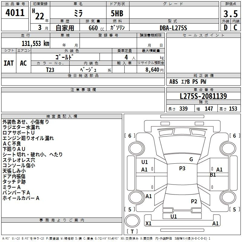 Daihatsu Mira, 2010 года - Лот№4011 ★3.5