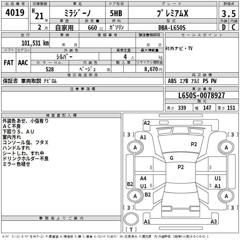 Daihatsu Mira, 2009 года - Лот№4019 ★3.5
